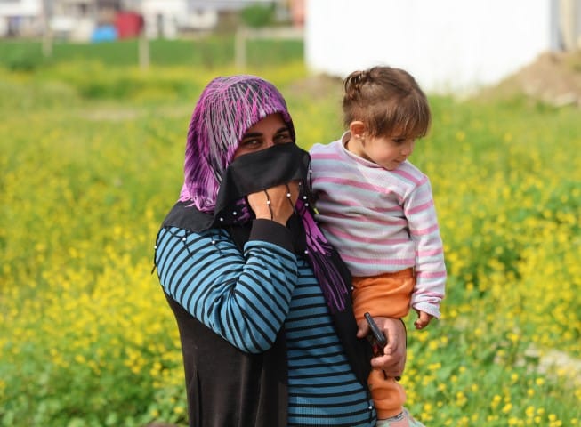 Engelli çocuğunu taşıyarak feryat eden anne