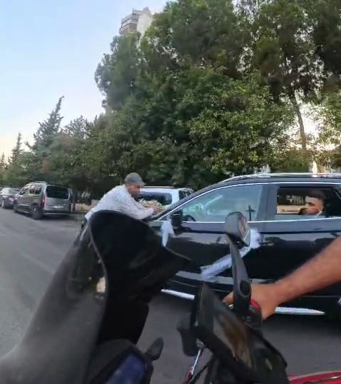 Bu dikkat çekici anlar, tesadüfen olay yerinden geçmekte olan bir motosiklet sürücüsünün kamerasına saniye saniye kaydedildi. Görüntülerde, bahşiş peşinde koşan kişinin araca atlaması ve sonrasında para alıp ayrılması net bir şekilde izlenebiliyor.