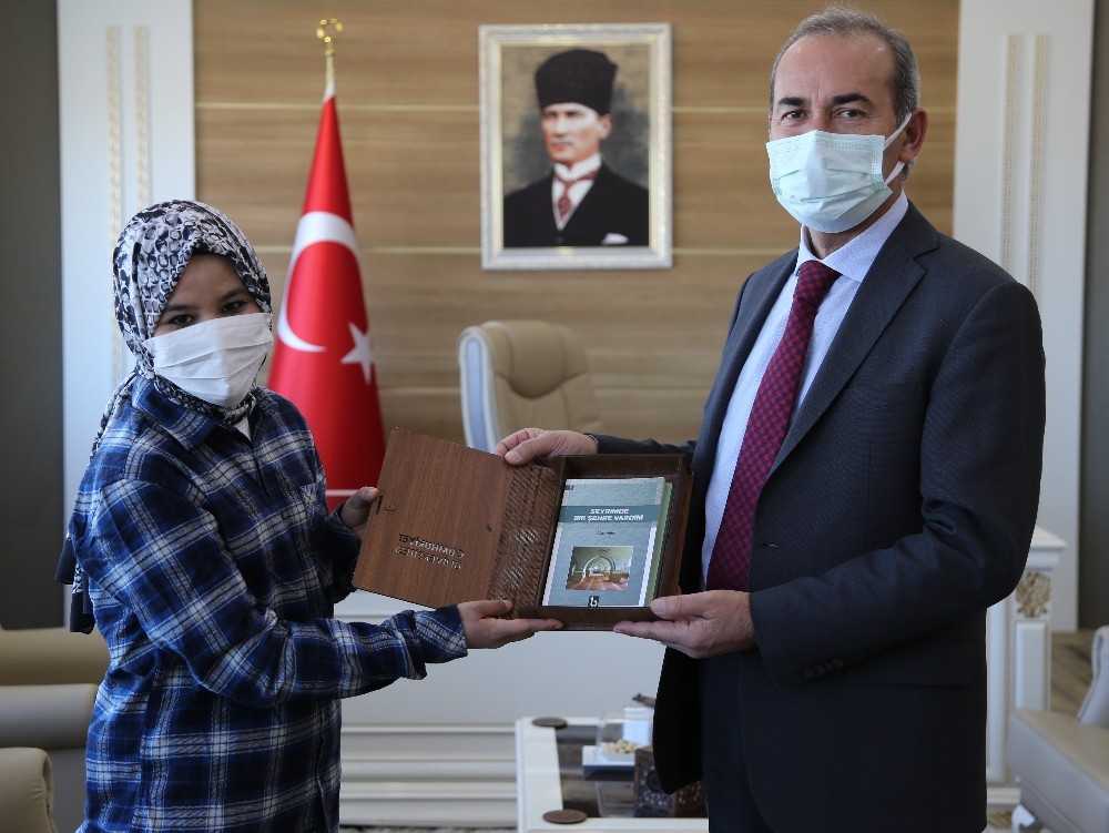Ziyaret duygusal ve samimi bir ortamda gerçekleşirken Rektör Yıldız’da Afgan öğrenciye ziyaret anıları takdim etti.