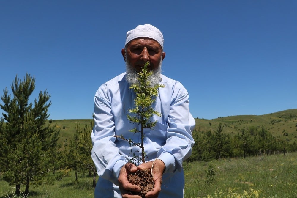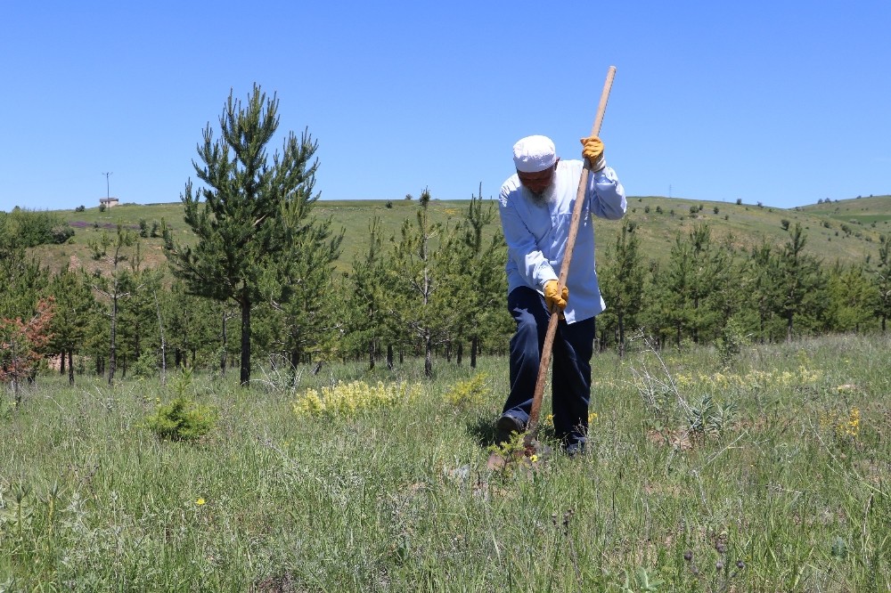 Yaşına aldırış etmeden binlerce ağaç dikimi yaptı