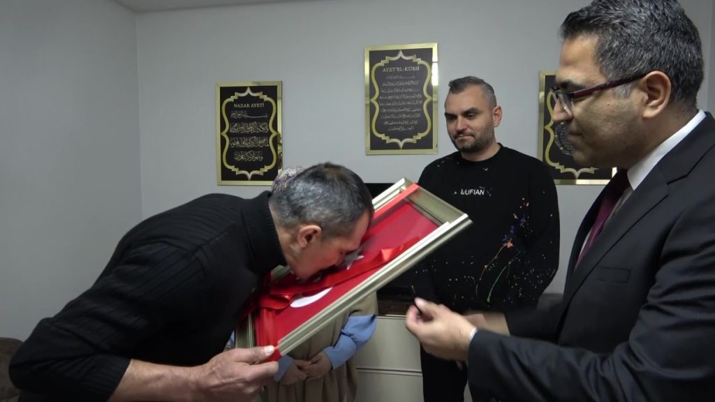 Yeni evine taşınan Keten’e, Amasya Olgunlaşma Enstitüsü tarafından el emeği Türk bayrağı hediye edildi. Keten, bayrağı duygulanarak duvara astı.