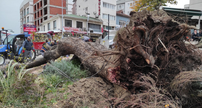Bursa’da şiddetli lodos 270 yıllık çınar ağacını devirdi