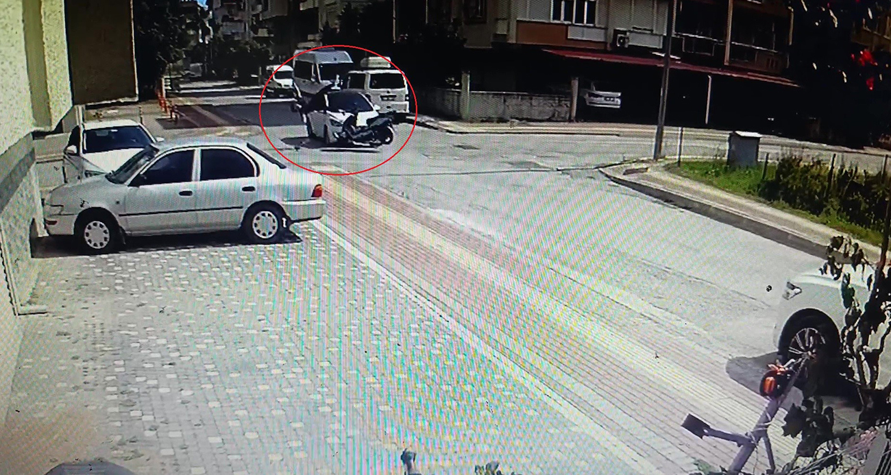 Antalya’nın Manavgat ilçesi Örnek Mahallesi’nde meydana gelen trafik kazası, güvenlik kameralarına yansıdı. Balıkçılar Çarşısı yönüne doğru seyir halinde olan Dilara G. yönetimindeki 07 AUL 011 plakalı otomobil ile aynı sokakta ilerlemekte olan Hüseyin Y. idaresindeki 07 BSC 372 plakalı motosiklet, kavşakta çarpıştı.
