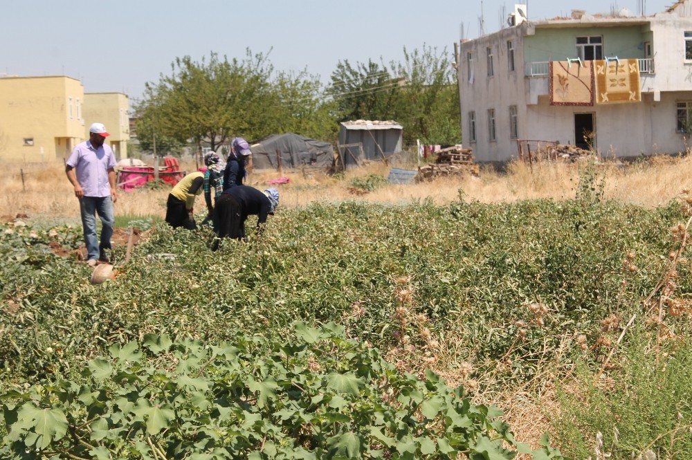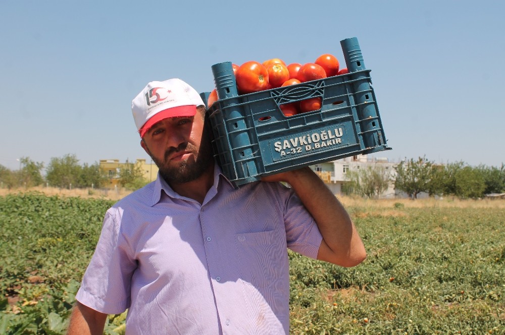 Atanamayan öğretmen 45 derece sıcaklıkta tarlada domates topluyor