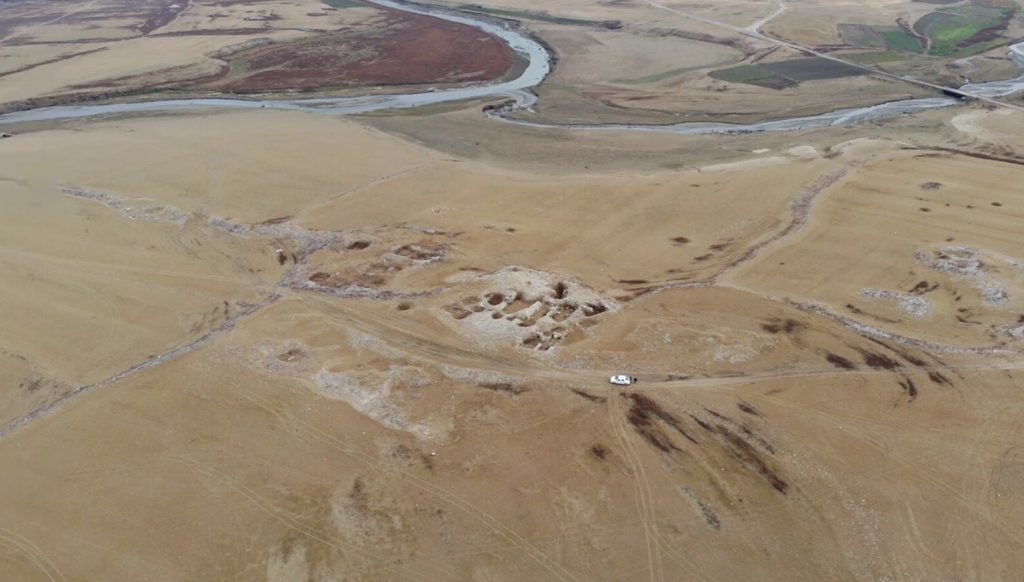 Baraj suları çekilince ortaya çıkan bin 500 yıllık hamam ve kilise kalıntıları dron ile görüntülendi