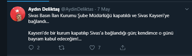 Kayseri’de bir kurum kapatılıp Sivas’a bağlandığı gün; kendimce o günü bayram kabul edeceğim!… ” Diye tepki gösterdi.