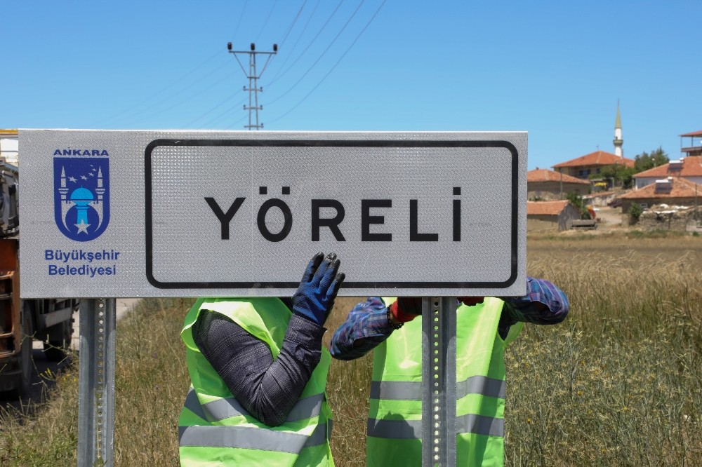 Büyükşehir Belediyesi, Başkent’in dört bir yanında paslanmış, kırılmış ya da yıpranmış tabelaları yenilerken, tabelası olmayan taşra ilçelerdeki mahallelerin giriş ve çıkışlarına da yeni tabela montajı yapıyor.