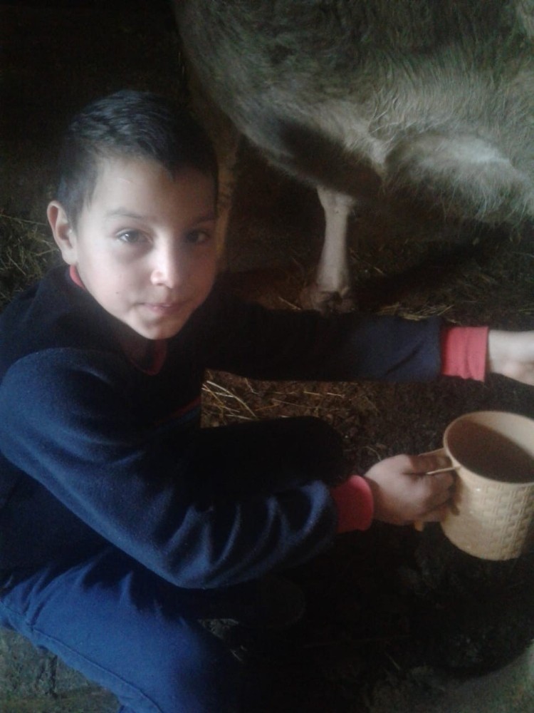 Sivas’a bağlı Şarkışla Akçakışla Şehit Yıldırım Kuzucular İlkokulu dördüncü sınıf öğrencileri, kendi hayvanlarından sağdıkları sütü içerek doğal ve sağlıklı besleniyor.