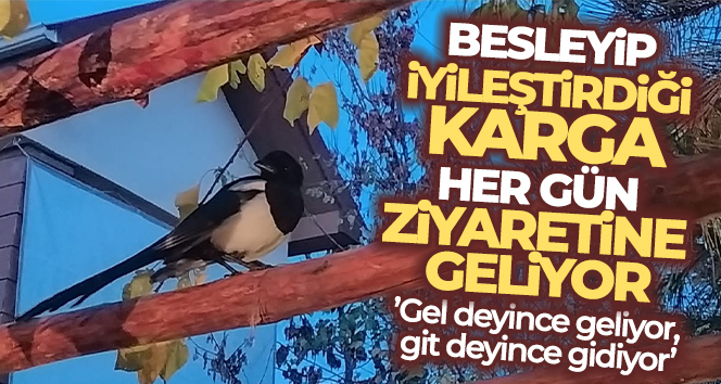 Besleyip iyileştirdiği karga, her gün ziyaretine geliyor