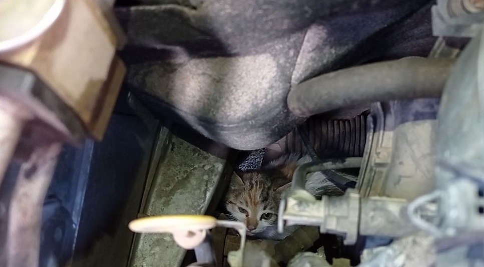 Araba motoruna giren kedi, yardım edenleri bezdirdi