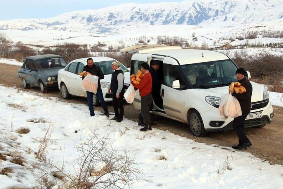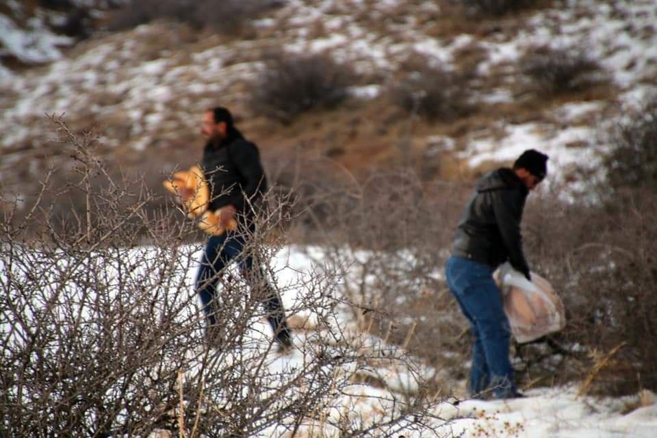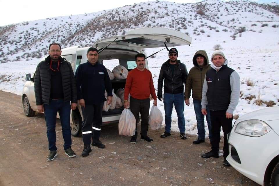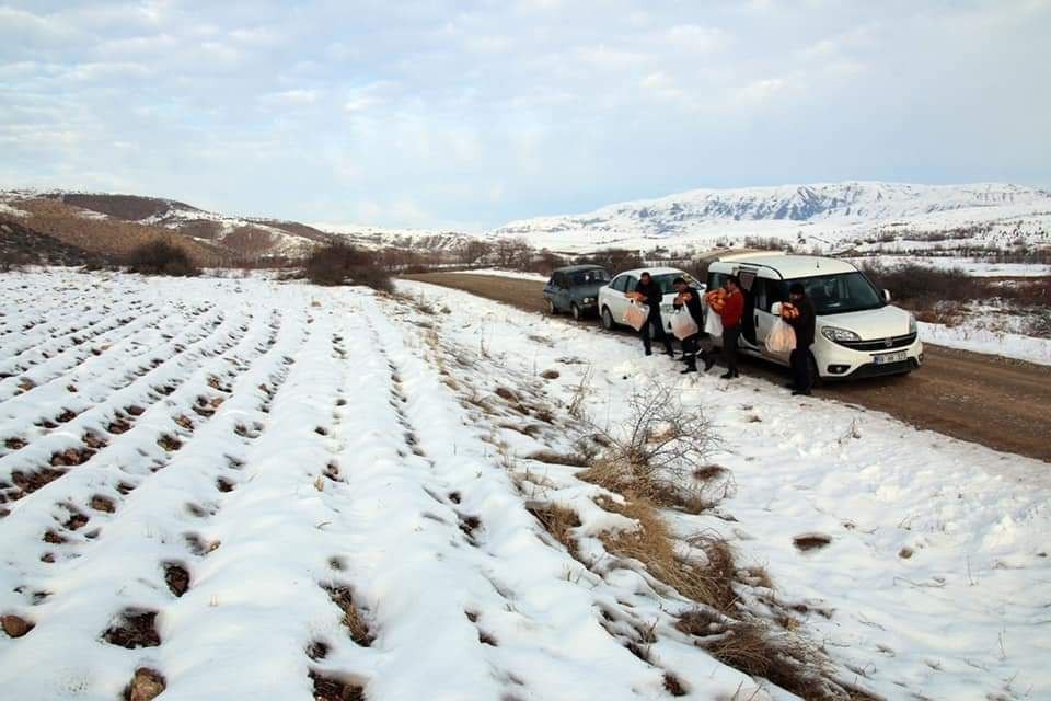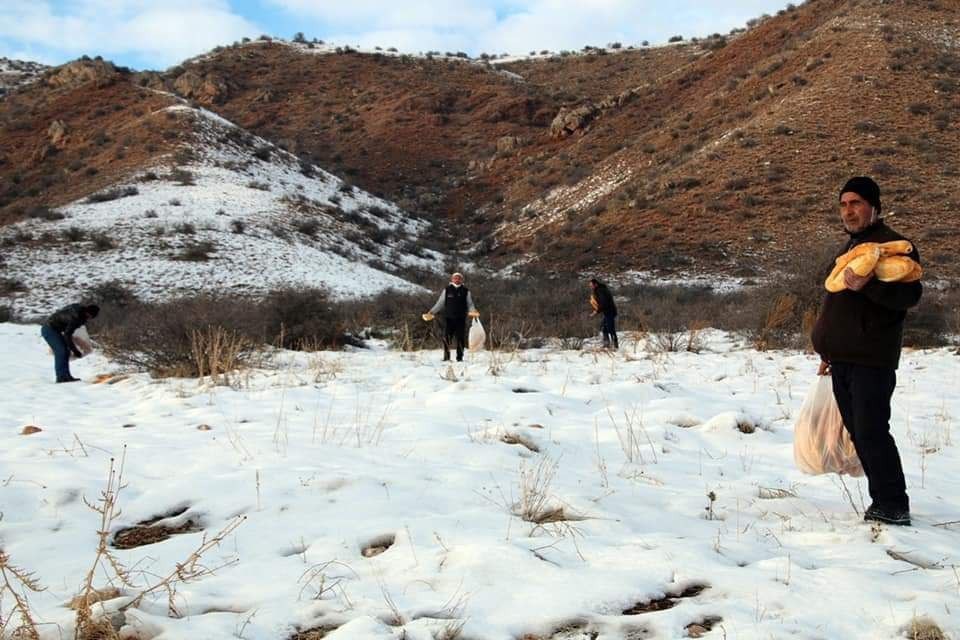 Şarkışla ilçesinde bir grup esnaf doğaya yem bıraktı