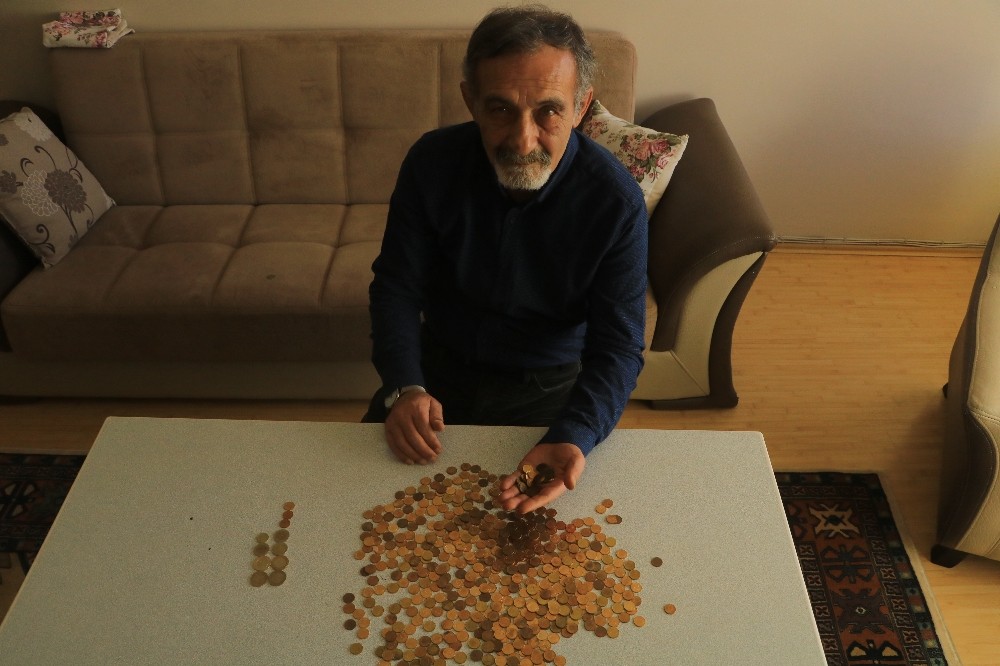 Sivas merkezde yaşayan emekli memur Ahmet Çintay, ATM’de yaptığı işlemlerden sonra aldığı 1 kuruşluk 563 adet para üstünü oğlunun düğününde değerlendirmeyi planlıyor.