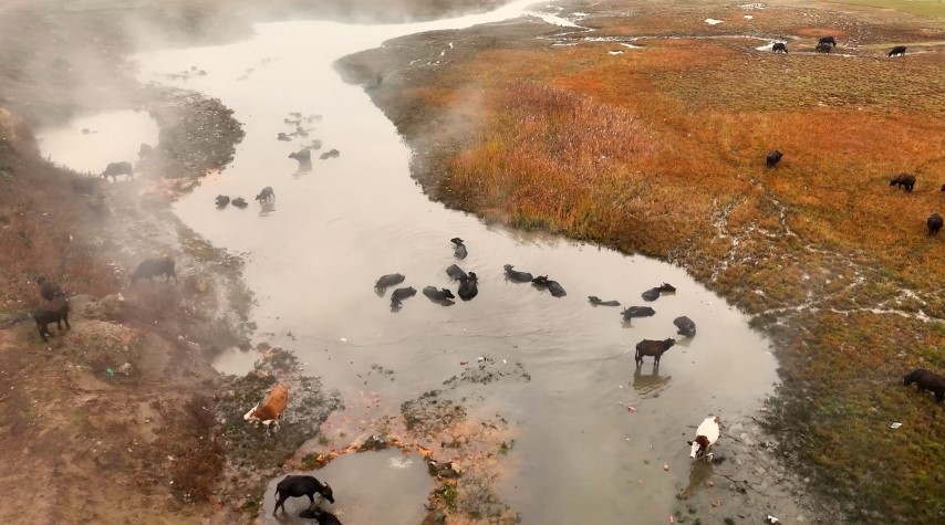 Kış soğuklarına karşı korunmak ve temizlenmek için sıcak kaplıca sularına götürülen mandalar, burada hem rahatlıyor hem de sağlıklarını koruyor. Yaklaşık 40 derece sıcaklıktaki bu kaplıca suları, mandalar için ideal bir temizlik ve ısıtma ortamı sağlıyor.