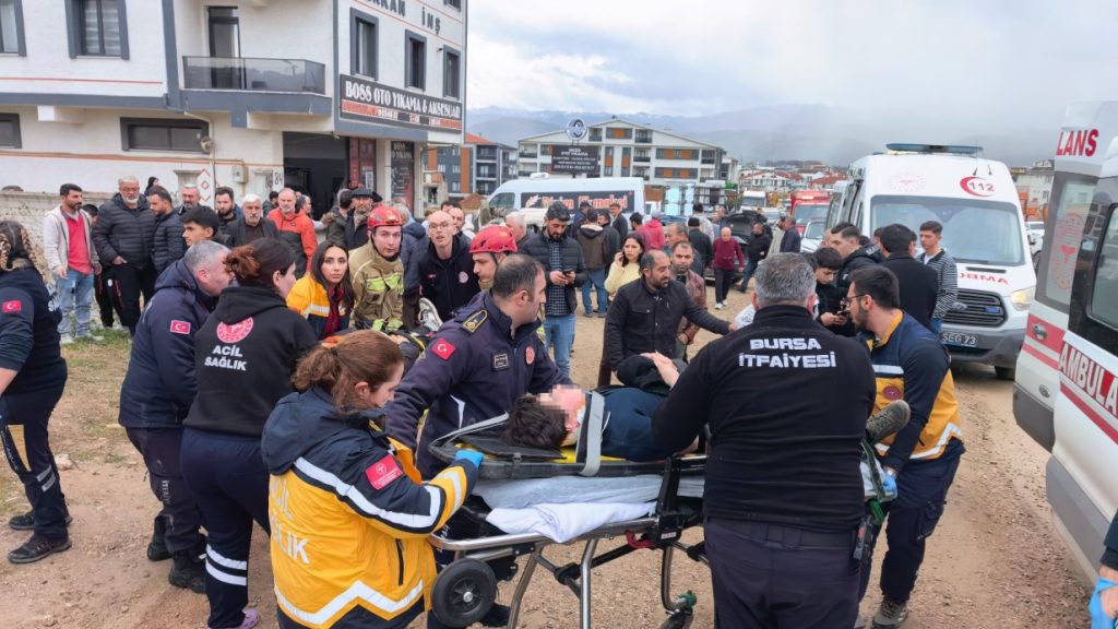 Çarpmanın şiddetiyle ters dönen araçta bulunan A.B. ve araçta yolcu olarak bulunan öğrenciler S.B. (14), İ.Ş. (16), E.D. (15), B.A. (15), E.T. (16), ve M.D. (16) sıkıştı. İhbar üzerine olay yerine gelen 112 Acil Sağlık ekipleri, polis ve itfaiye arama kurtarma ekipleri, hızla müdahale etti. İtfaiye ekiplerinin titiz çalışmaları sonucu yaralılar araçtan çıkarılarak, olay yerinde ilk müdahaleleri yapıldıktan sonra İnegöl Devlet Hastanesi’ne sevk edildi.