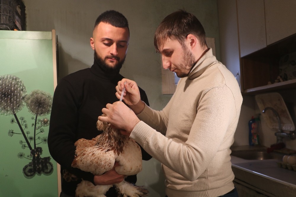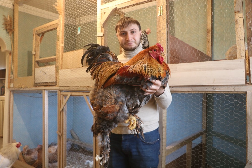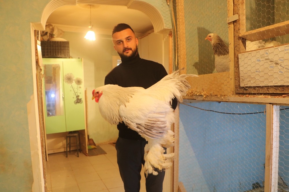 Sivas merkezde yaşayan ve cins tavuk yetiştiriciliği yapan genç havaların soğukluğundan dolayı tavuklarına kiraladığı evde bakıyor.
