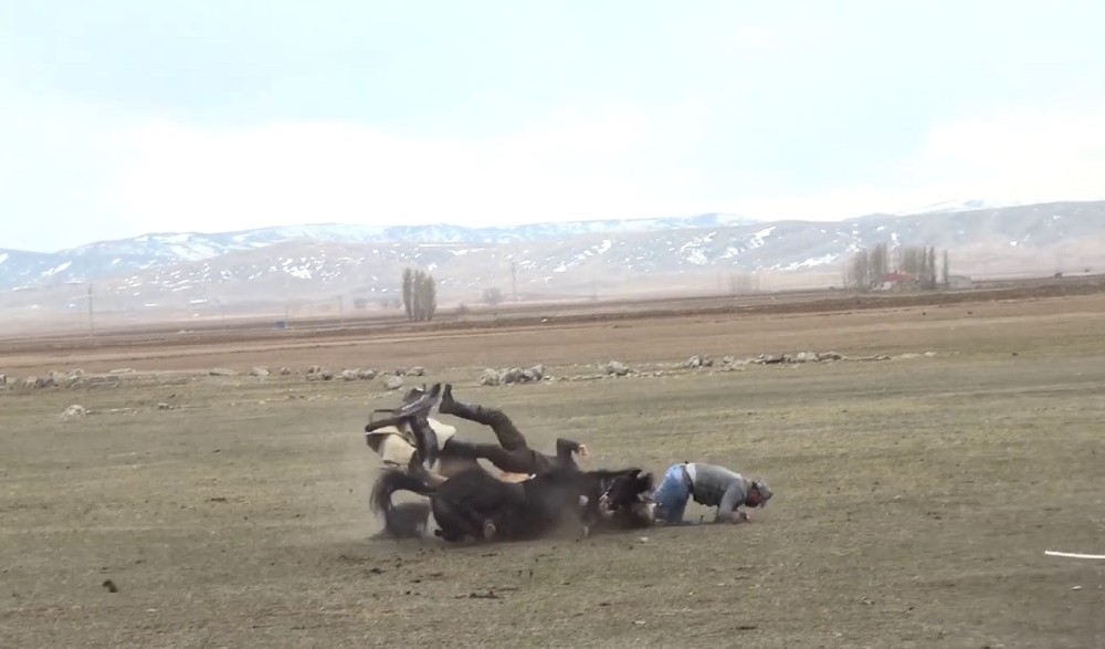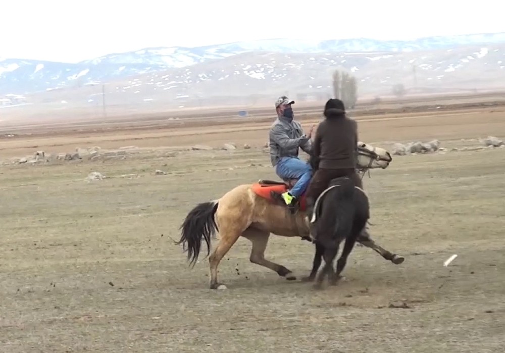 Sivas’a bağlı Altınyayla ilçesinde meydana gelen ilginç olayda cirit antrenmanı esnasında iki at çarpıştı ve atlar ile birlikte biniciler de hafif şekilde yaralandı.