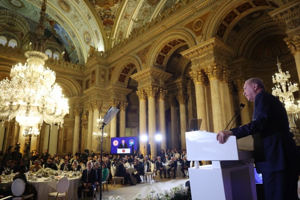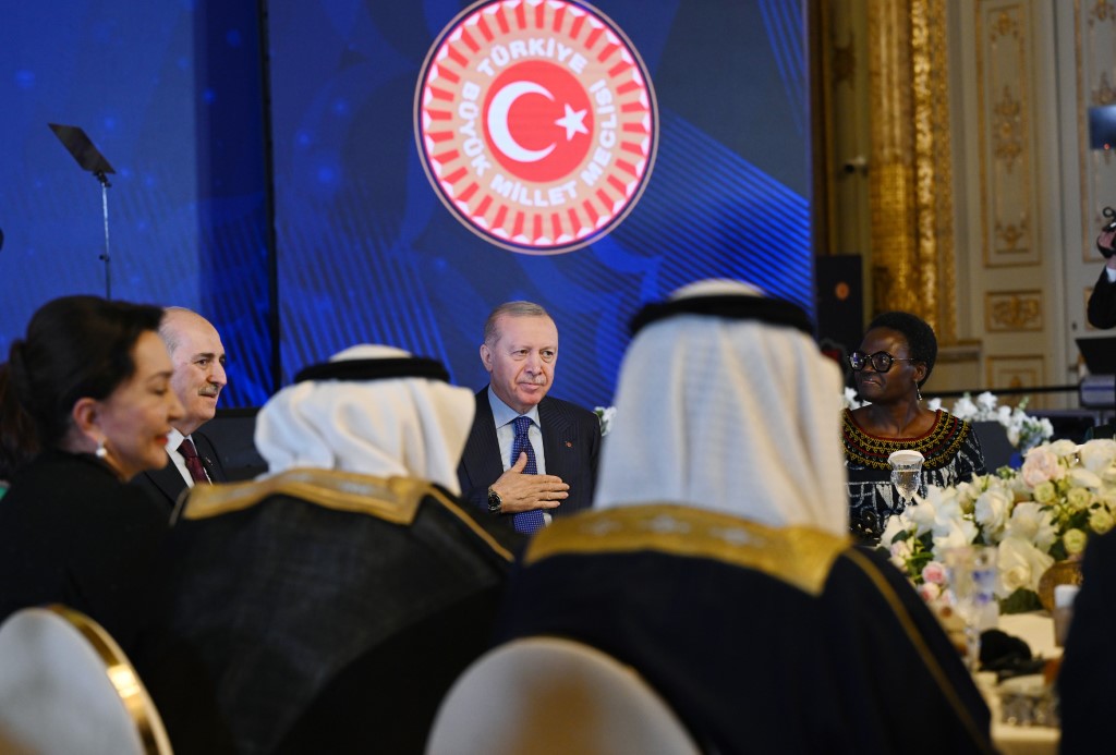 “Uluslararası sistemin meşruiyet krizi içinde olduğunu” ifade eden Erdoğan, diyalog ve iş birliğinin önemine işaret etti. Diplomasi ve müzakerelerin silah ve şiddetle yer değiştirmesinin tehlikelerine dikkat çekti.