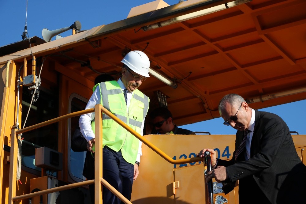 Yozgat’ta bir dizi ziyaret ve incelemelerde bulunan Cumhurbaşkanı Yardımcısı Fuat Oktay, Yüksek Hızlı Tren (YHT) ve havaalanı inşaatındaki çalışmaları yerinde inceledi. Sorgun’da bulunan Yüksek Hızlı Tren şantiye alanında ray serim çalışmalarını inceleyen ve tren yolu bakım aracına binerek hat üzerinde test sürüsü gerçekleştiren Cumhurbaşkanı Yardımcısı Oktay, çalışmalar hakkında da yüklenici firma yetkililerinden bilgiler aldı.