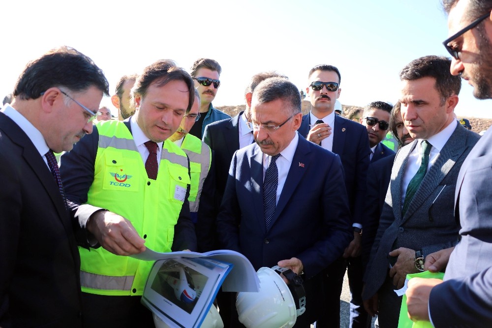 Ankara-Sivas Yüksek Hızlı Tren hattında çalışmaları, 2020 yılında tamamlamayı arzu ettiklerini ifade eden Oktay, “Yüksek Hızlı Tren Projemiz Ankara-Sivas arası 810 kilometrelik bir hat. 405 gidiş, 405 geliş. Çalışmalar oldukça iyi. Yerinde de tespit ettik, çalışan arkadaşlarımızla da, Genel Müdürümüzle birlikte. Detaylı bir de brifing aldık kendilerinden. Kısmet olursa bu yıl sonu itibariyle artık test çalışmalarına, test sürüşlerine de başlıyor olacağız. Kısmet olursa 2020 yılında bu hattı tamamlamayı arzu ediyoruz. Ulaştırma Bakanlığımız, Devlet Demir Yollarımız tüm çalışmalarını bu programa göre yürütüyor. Buna göre de kaynak aktarımları devam ediyor. Burada şuandaki konvansiyonel hattımıza baktığımız da yaklaşık 12 saat, yani Ankara’dan çıkan bir trenin Sivas’a ulaşma süresi 12 saat. Yüksek Hızlı Tren tamamlandığında bu 2 saate düşmüş olacak” şeklinde konuştu.