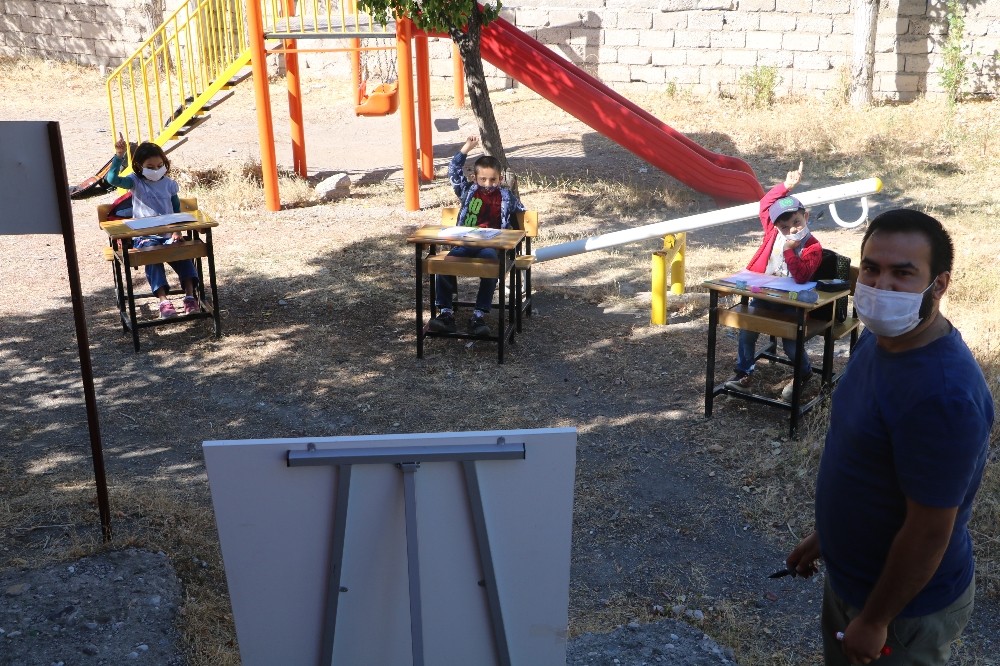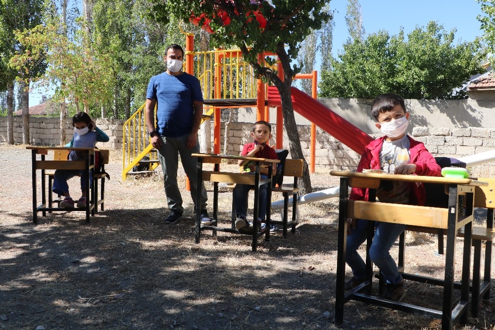 Şarkışla ilçesinin Döllük köyünde öğrencilerin uzaktan eğitime erişiminin kısıtlı olmasından ötürü elini taşın altına koyan Abdulmelik Şeker isimli öğretmen okul bahçesine derslik kurdu.