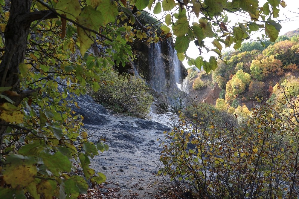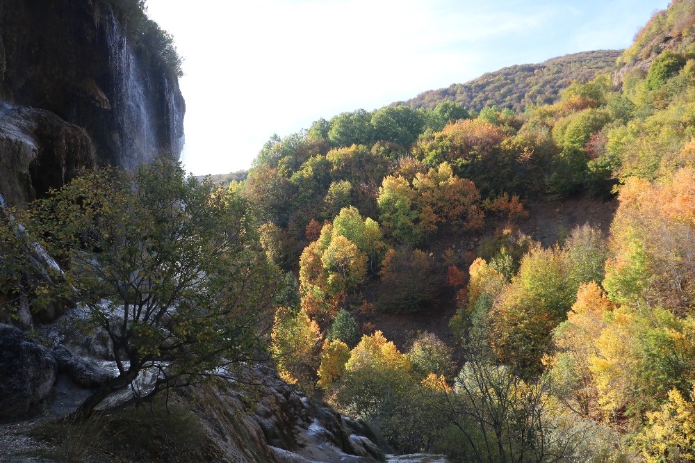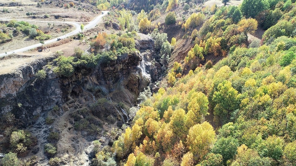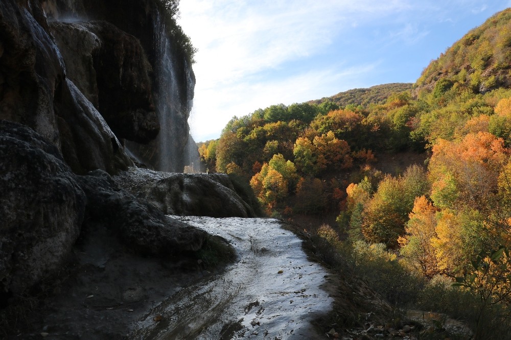 Doğanşar ilçesinde bulunan eşsiz güzelliklerden Dipsiz Göl Şelalesi, sonbahar aylarına girilmesiyle birlikte adeta canlandı ve rengarenk bir hale büründü.