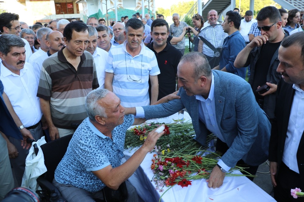 AK Parti Antalya İl Başkanlığında Kurban Bayramı vesilesiyle bayramlaşma töreni gerçekleştirildi. Programın açılış konuşmasını gerçekleştiren Dışişleri Bakanı Mevlüt Çavuşoğlu, tüm Antalyalı hemşehrilerinin bayramını kutladı. Büyük ve güçlü bir aile olduklarını belirten Bakan Çavuşoğlu, Antalya’da birlik beraberlik içinde çalışmaya devam edildiğini aktardı. Antalya’nın Türkiye’nin dünyaya açılan kapısı olduğunu dile getiren Çavuşoğlu, “Biz bugüne kadar Cumhurbaşkanımızın liderliğinde, Menderes Türel’in Büyükşehir Belediye Başkanlığı dönemlerinde hem Ankara’dan gelen hem de Antalya yerelin de yapılan hizmetlerle Antalya’mızı ihya ettik. Seçimi kaybettik diye Antalya’ya küsecek değiliz. Antalya’ya hizmetlerimiz devam edecek, Liman kavşağının açılışını yaptık mükemmel bir köprülü kavşak oldu. Aynı şekilde Korkuteli ile Elmalı arasındaki duble yolun bir kısmını tamamladık, hizmete açtık, en kısa zamanda Elmalı’ya kadar yol tamamlanacak. Elmalı’dan Kaş ve Kalkan’a giden yolları da yapacağız. Manavgat’a 500 yataklı bir hastane sözümüz vardı, girecek. Tahsis edilen yer ancak 4 yatağa uygun geldi. 400 yataklı Manavgat Hastanesi için Sağlık Bakanlığındaki resmi işlemler tamamlandı, projesi hazırlanıyor yatırım programına girecek. Korkuteli, Manavgat, Alanya ve diğer 3 tane ilçemize daha doğal gaz sözü verdik. Bunların da hayata geçmesi için arkadaşlarımızla beraber çalışıyoruz” diye konuştu.