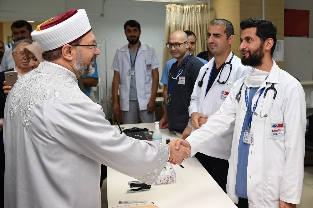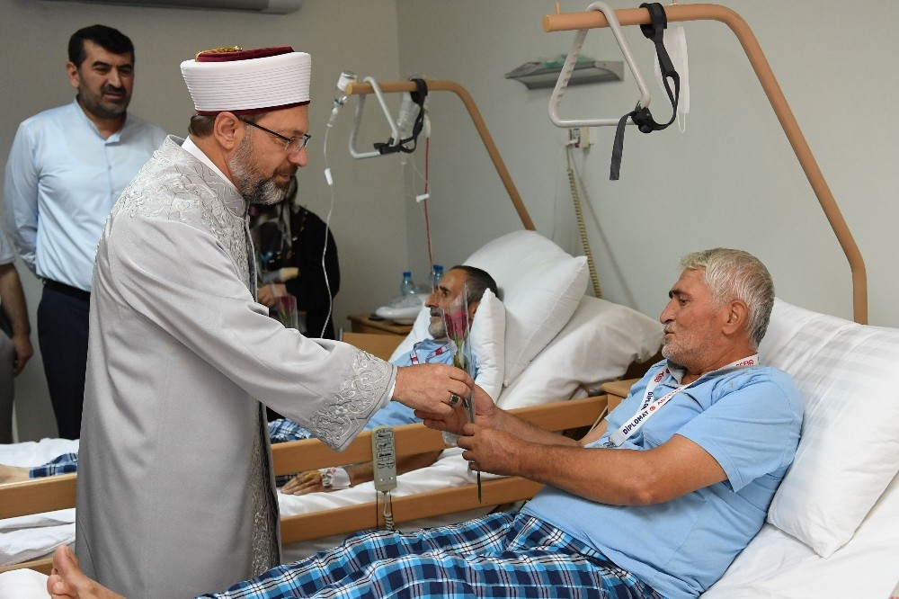Yapılan basın toplantısının ardından hastaları ziyaret eden Erbaş, yatakta tedavi gören hastaları ziyaret etti. Erbaş, hastalara gül hediye ederek geçmiş olsun dileğinde bulundu.