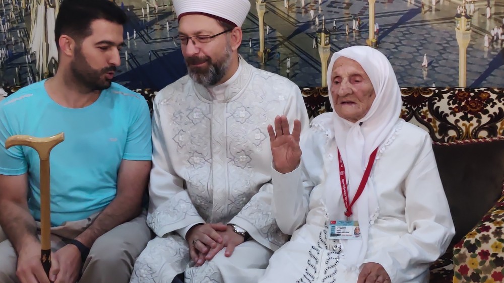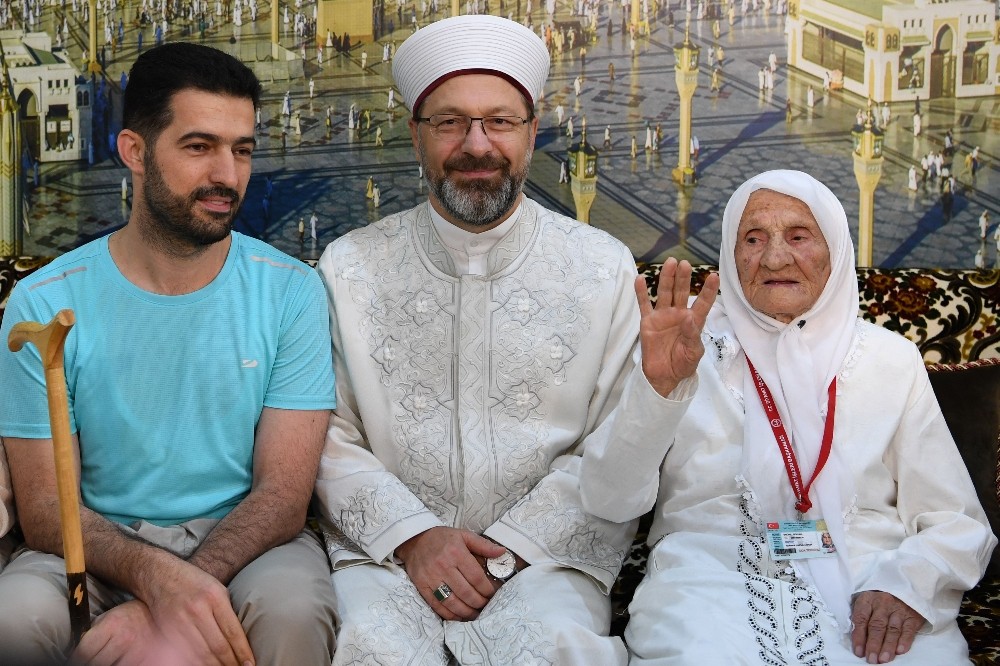 Diyanet İşleri Başkanı Prof. Dr. Ali Erbaş, bu yıl kutsal topraklarda bulunan en yaşlı hacı adayı olan 105 yaşındaki Fikriye Çam ile bir araya geldi.