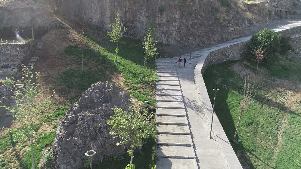 Terör olayları sonrası yeniden yapılandırılan Sur ilçesinde Millet Bahçesi’nin yapımı tamamlanarak vatandaşların hizmetine açıldı. İhlas Haber Ajansı (İHA) tarafından drone ile havadan görüntülenen Millet Bahçesi’nde Sur Kaymakamı Abdullah Çiftçi incelemede bulundu.