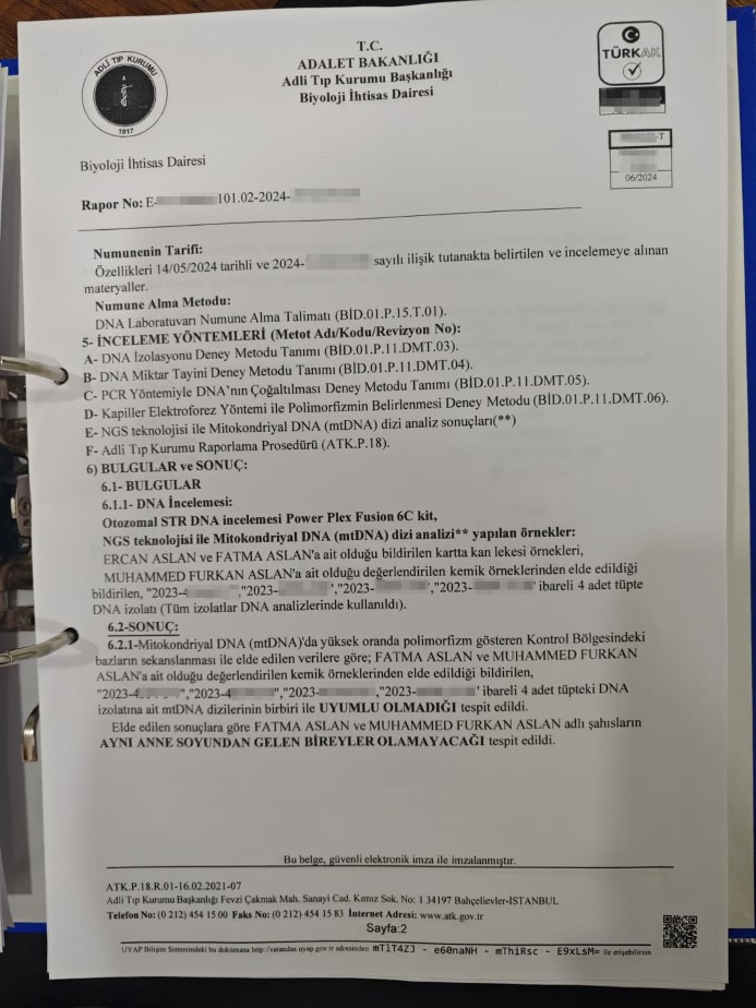 Yıllar sonra yapılan DNA testi, anne Fatma’nın şüphelerini doğruladı. Test sonucu, defnettikleri bebeklerinin biyolojik olarak kendilerine ait olmadığını ortaya çıkardı. Bu sonuç üzerine, çiftin avukatı Zeki Oran’ın açıklamalarına göre, savcılık soruşturmayı yeniden açtı ve çocuklarına ne olduğunu bulmak için çalışmalar devam ediyor.