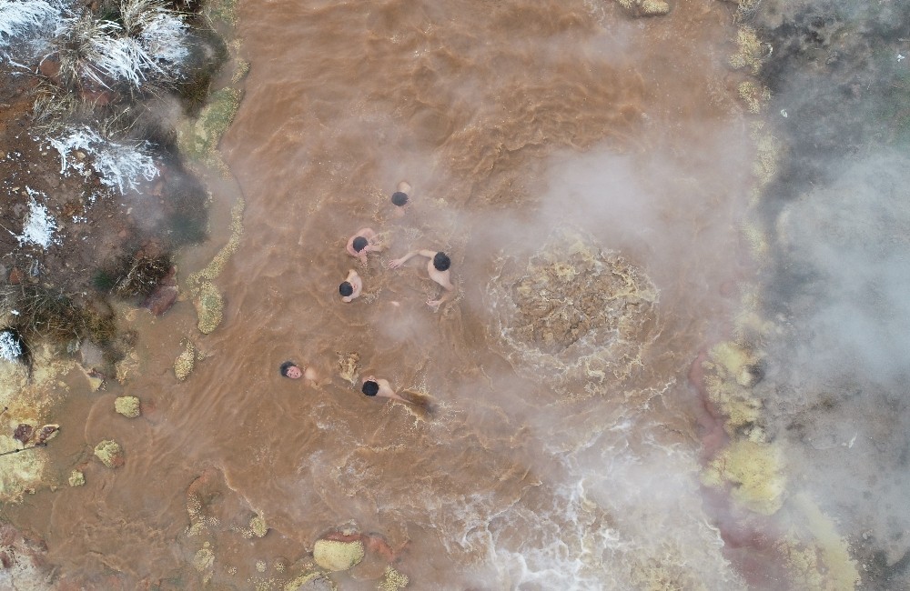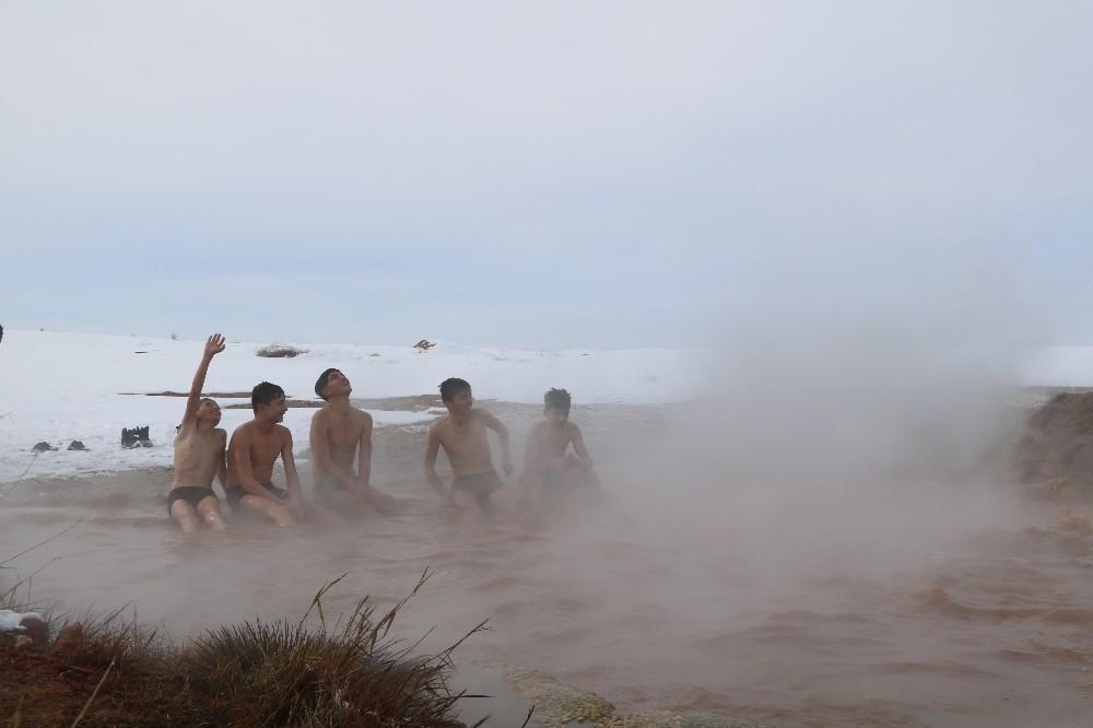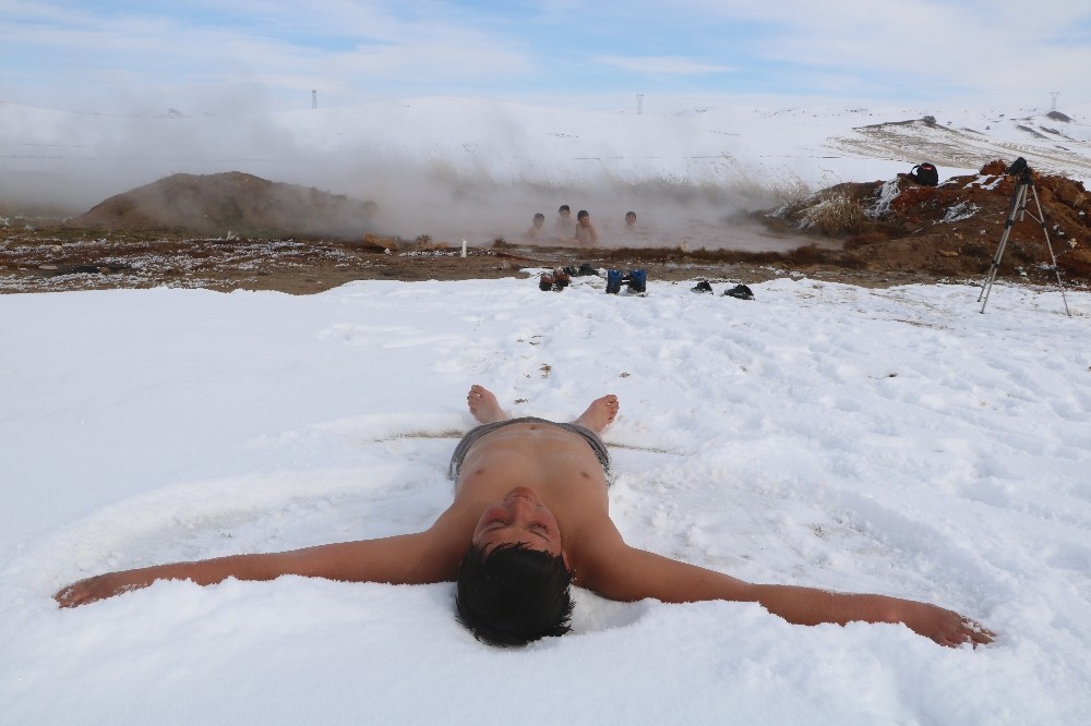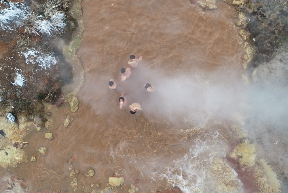 Yıldızeli ilçesinde eksi 10 derecede doğal jakuziye giriyorlar