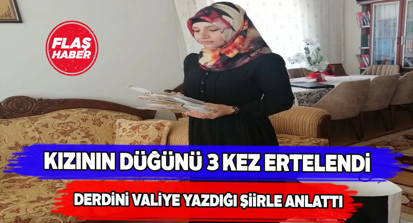 Sivas’ta uzun bir süredir kızının düğününü gerçekleştirmek istemesine rağmen alınan kararlardan ötürü 3 kez düğün ertelemek zorunda kalan Sultan Tekin isimli vatandaş Vali Salih Ayhan’a sıkıntısını anlatabilmek için şiir yazdı.