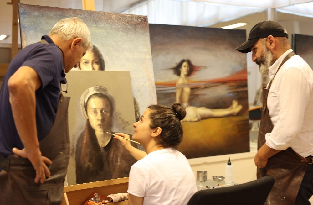 Norveç’ten Efeler’e gelen uluslararası sanatçılar Eser Afacan ile Hakan Yaşar’ın, 10 ay süreyle 20 kursiyer ressam ile yağlıboya eğitim çalışmalarına start verildi.