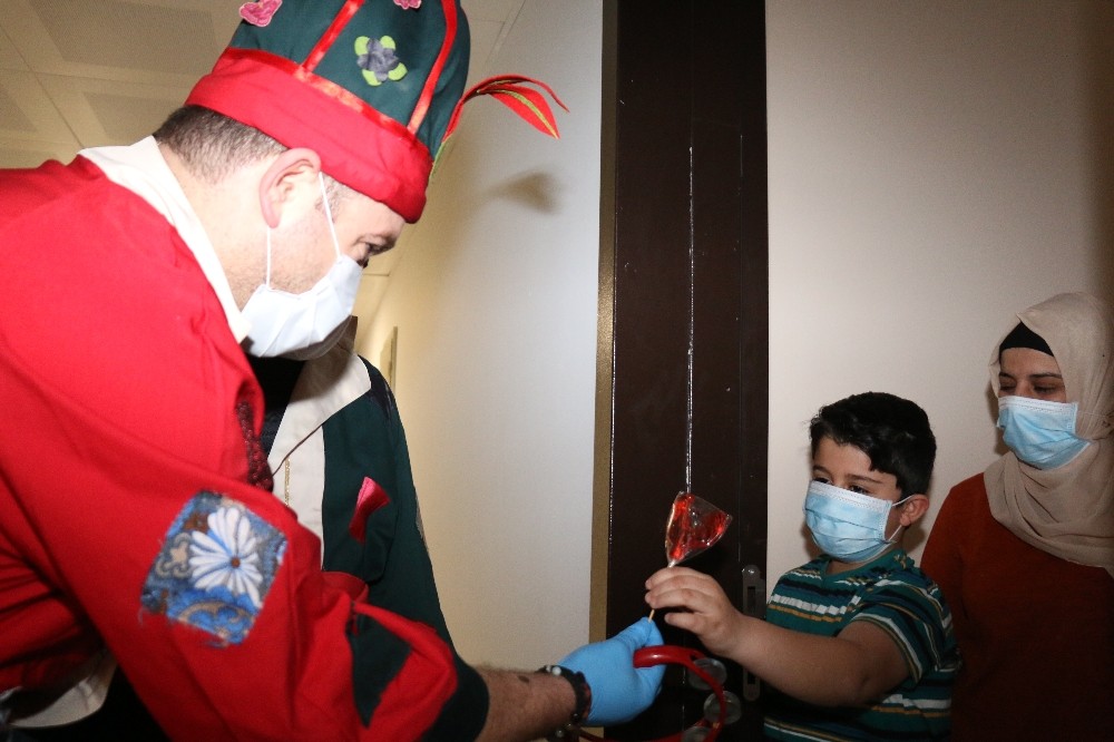 Kapı kapı dolaşan ve çocuğu olan ailelerin kapısını çalan görevliler, birkaç gündür karantinada bulundukları için canları sıkılan çocukları hem güldürdü, hem de onlara Sivas’ın Ramazan aylarına özgün meşhur tadı horoz şekeri verdi.