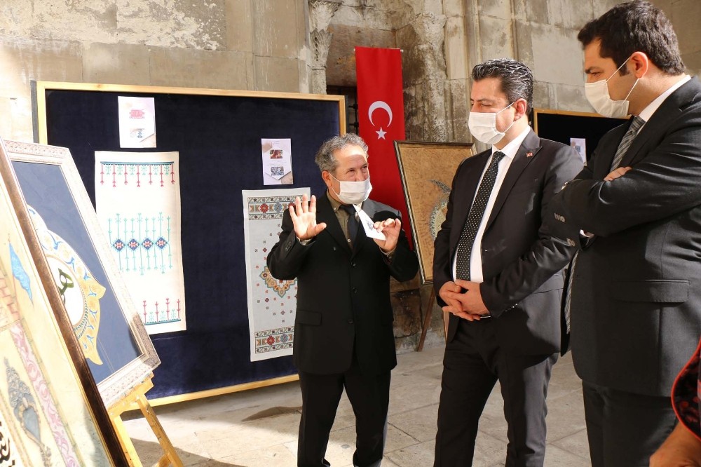 Enstitü Müdürü Şenlen’in konuşmasının ardından Sivas Vali Yardımcısı Yunus Emre Temel ve Sivas İl Milli Eğitim Müdürü Ebubekir Sıddık Savaşçı açılış kurdelesini birlikte keserek sergideki eserleri inceledi.