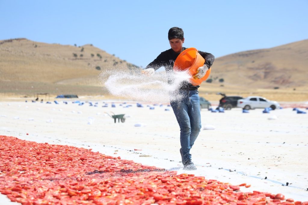 Elazığ’ın Alatarla köyünde, 2 bin dönüm alanda yetişen domatesler, Mehmet Salih Kıran ve Erhan Arıkboğan liderliğindeki 600 işçi tarafından özenle hasat ediliyor. Yerel ve uluslararası pazarlara sunulan bu domatesler, önce ikiye bölünüyor, tuzlanıyor ve güneşte kurutuluyor. Kurutma işlemi sonrası domatesler, özellikle ABD ve Fransa başta olmak üzere dünya geneline gönderiliyor.