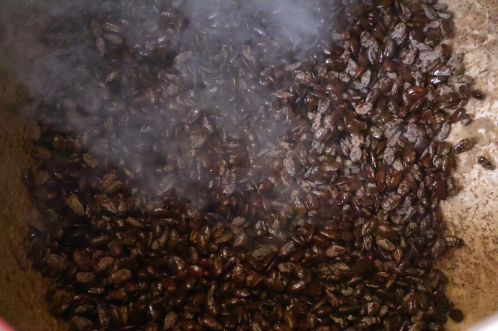 Badem şekeri ustası Coşkun Ceylan ise, “Kahveli badem şekeri fikri, müşterilerimizin önerileriyle ortaya çıktı. Kahve alışverişi yapanlar, kahve aromalı badem şekeri fikrini çok sevdiler. Özellikle kahve kültürüne sahip olanlar bu yeni tatı çok beğendi. Her iki günde bir yeni üretim yaparak bu talebi karşılıyoruz,” şeklinde konuştu.