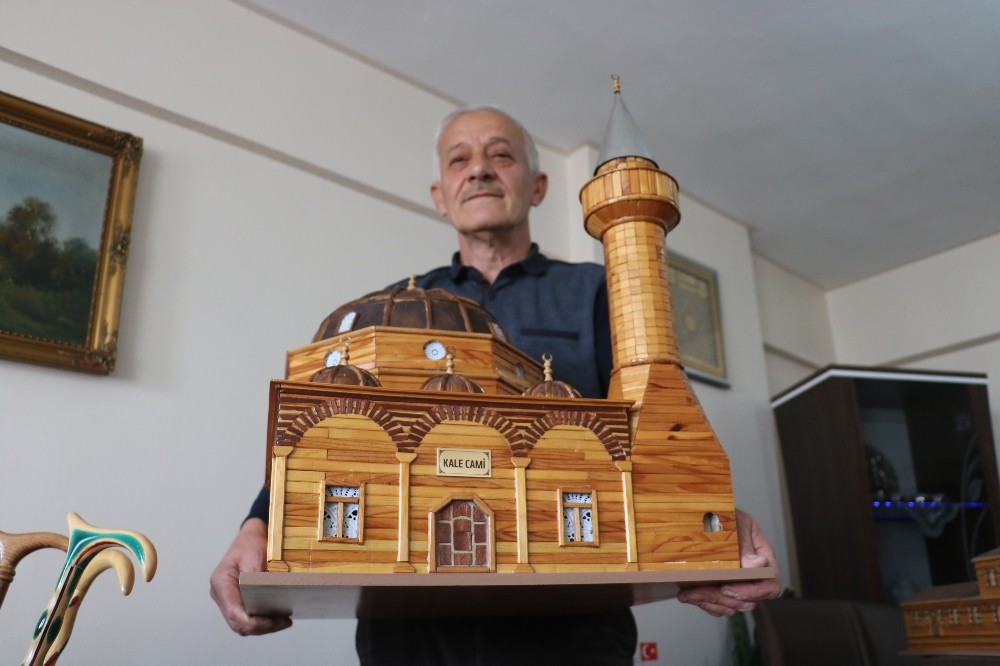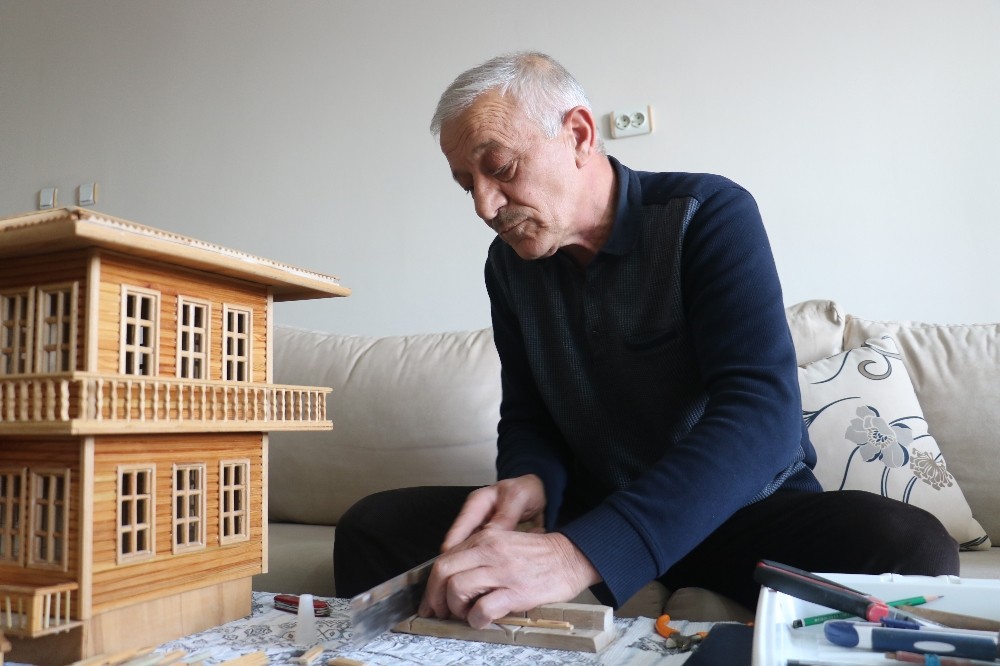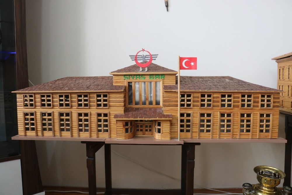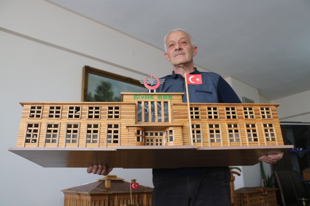 Sivas’ta yaşayan 60 yaşındaki emekli vatandaşın yaklaşık 6000 tahta parçası kullanarak yaptığı minyatür eserler büyük beğeni topluyor.