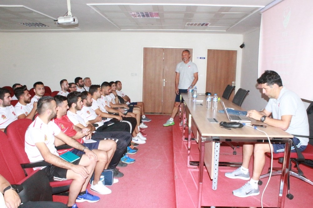 Erzincan Gençlik ve Spor İl Müdürlüğü Gençlik Merkezi toplantı salonunda düzenlenen eğitim seminerine, Erzincan ve çevre illerden futbolcu antrenör adayları katıldı.