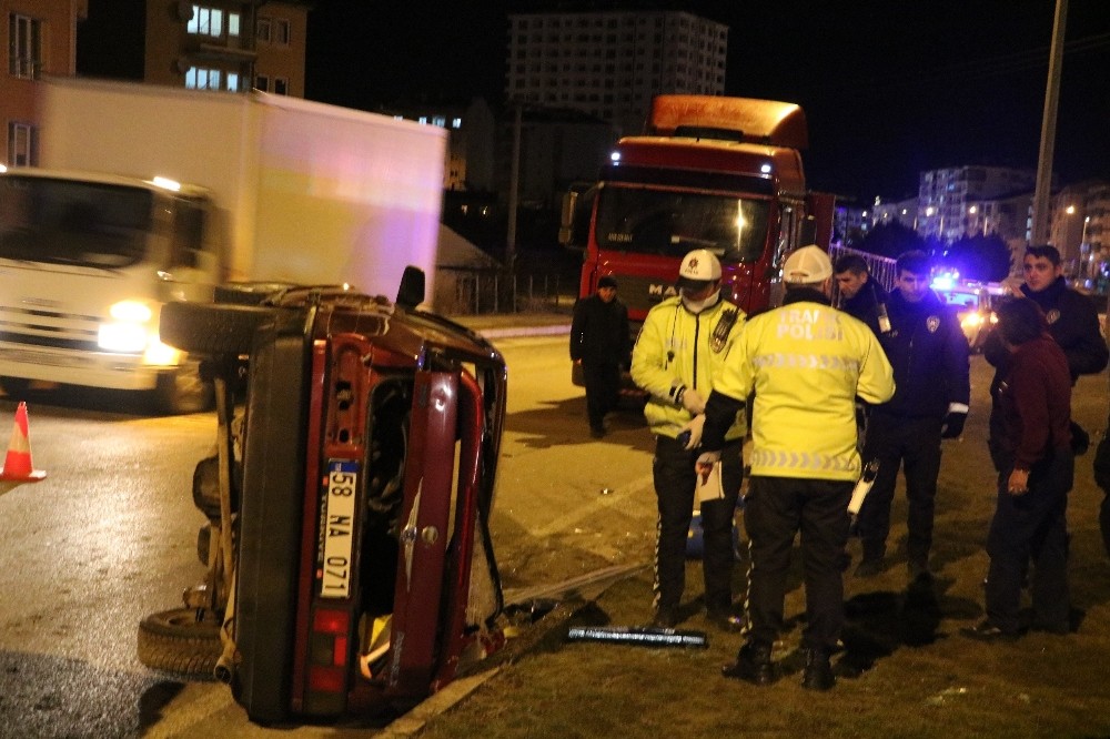 Aynı istimakete giden bir tır ile otomobil bilinmeyen bir sebepten ötürü çarpıştı. Sivas ile Erzincan arasındaki karayolunda meydana gelen kazada otomobil çarpmanın etkisiyle devrildi ve yana yatık bir şekilde kaldı. Otomobilin içerisinde bulunan 5 kişi de hafif yaralandı. Tırın sürücüsünde ise herhangi bir yaralanma durumu söz konusu olmadı.