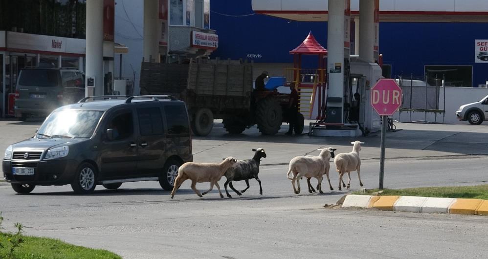 Firar eden kurbanlık koçlar trafiği birbirine kattı
