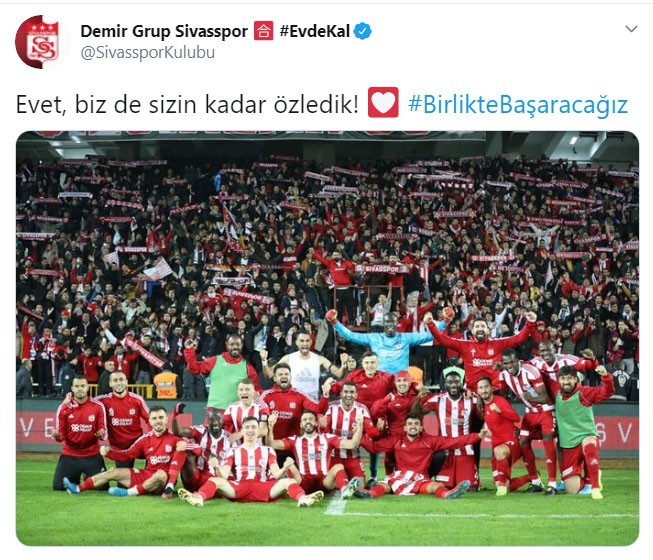 Sivasspor’un sosyal medya hesabı üzerinden yapılan paylaşım yüzlerce beğeni aldı. Yapılan yorumlarda taraftarların da futbola büyük özlem duyduğu dile getirildi.