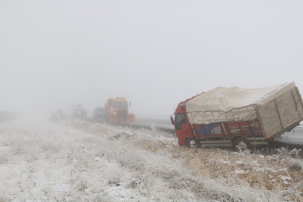 Sivas’a bağlı Kangal ilçesindeki Yağdonduran geçidinde kötü hava şartları ve aşırı sisten dolayı trafikte zorlu anların yaşanırken meydana gelen 4 farklı kazada 9 araç hasar gördü.