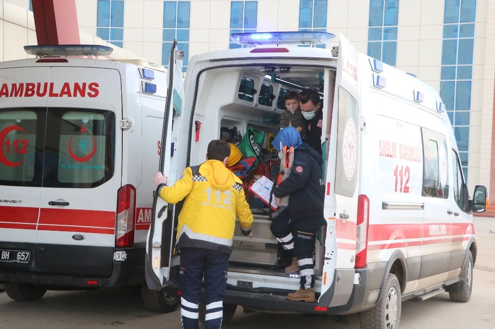 Sivas’ta meydana gelen olayda doğalgazdan etkilenen iki küçük çocuk ambulans ile hastaneye kaldırılırken kardeşlerden birini sağlık çalışanın kucağında taşıması gönülleri fethetti.