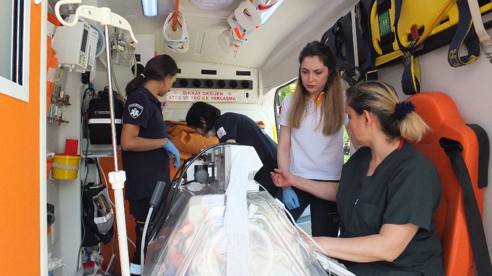 Ambulansla pist alanına getirilen bebek, hava ambulansı doktorları tarafından tekrar kuvöze konularak Ankara Üniversitesi Tıp Fakültesi Hastanesi’ne götürüldü.
