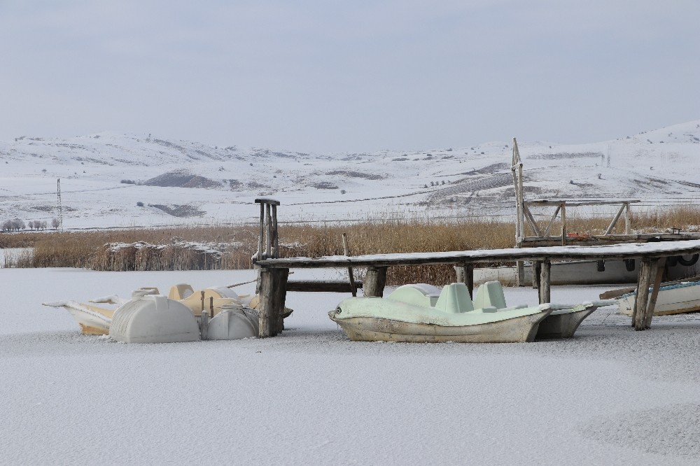 Sivas’ta birkaç haftadır etkili olan Sibirya soğukları ile bölgede bulunan tüm göl ve su birikintileri donarken Hafik gölüde bu durumdan nasibini aldı. Gölün ortasında bulunan Pılır höyüğünün karla kaplı ilginç görüntüsü ise gökyüzünden drone ile görüntülendi. Havadan ilk bakıldığında adeta bir gözü andıran höyük görselleri sosyal medyaya da yüklenerek çok sayıda kişi tarafından paylaşıldı.