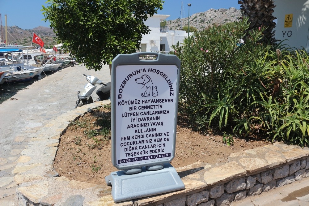 Marmaris’in Bozburun Mahalle Muhtarlığı hayvan sevgisini aşılamak ve bu konuda farkındalık oluşturmak için bir ilke imza atarak, işlek noktalara bilgilendirme tabelaları konuldu.