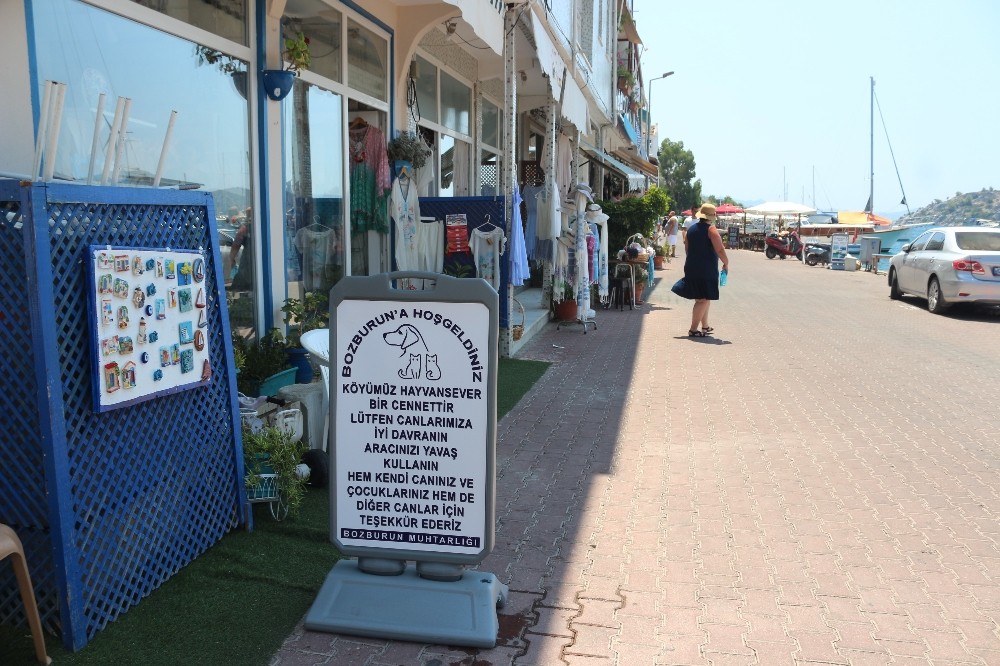 Muğla’nın dünyaca ünlü turistik ilçelerinden biri olan Marmaris’e bağlı Bozburun Mahalle Muhtarlığı hayvan sevgisine yönelik önemli bir çalışmaya imza attı. Muhtarlık ve gönüllü vatandaşların katkısı ile hazırlanan üzerinde “Bozburun’a hoş geldiniz. Köyümüz hayvan sever bir cennettir. Lütfen canlılarımıza iyi davranın. Aracınızı yavaş kullanın, hem kendi canınız ve çocuklarınız için hem de diğer canlılar için. Teşekkür ederiz” yazan altı tabela işlek noktalara konuldu. Çalışma hakkında Muhtar Duran Güleç İhlas Haber Ajansı’na (İHA) açıklamalarda bulundu.