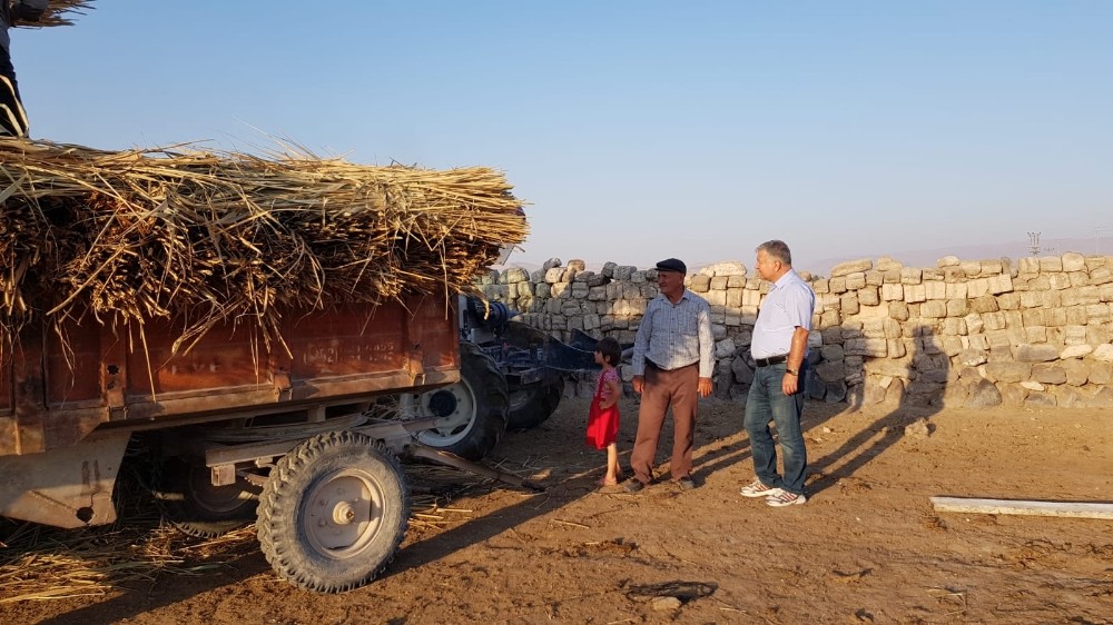 Sindelhöyük mahallesi Sultan Sazlığı Çarıklı mezrasında besicilik yapan vatandaşlar, biçtikleri otları patos makinesi ile saman haline getiriyor. Hayvanların kışlık yemlerini hazırlamak için hummalı çalışma içine giren vatandaşları, Develi Kaymakamı Murat Duru ziyaret ederek kolaylıklar diledi.