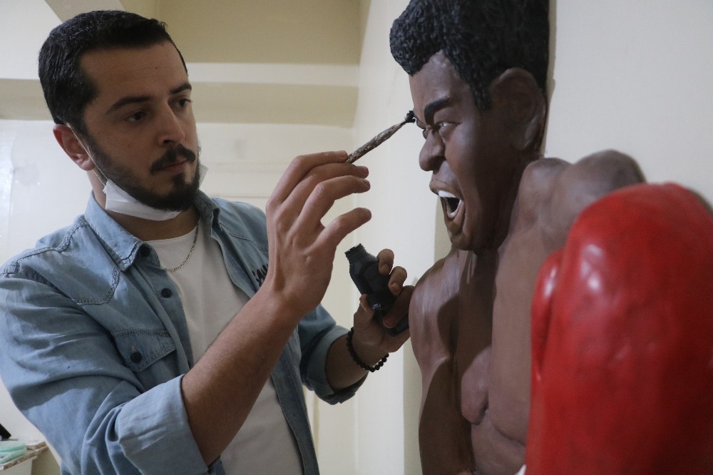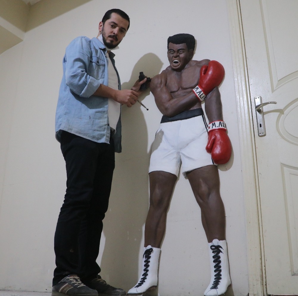 Heykeltıraş Kerim Emre Kököz yaptığı açıklamada ortaya çıkardığı rölyef heykeli görenlerin çok beğendiğini söyledi. Heykeli yapmaya karar verirken evrensel bir çalışma yapma düşüncesinin kendisini Muhammed Ali heykeli yapmaya ittiğini belirten Kököz, bu tür bir heykelin 2 bin liraya alıcı bulduğunu ifade etti.